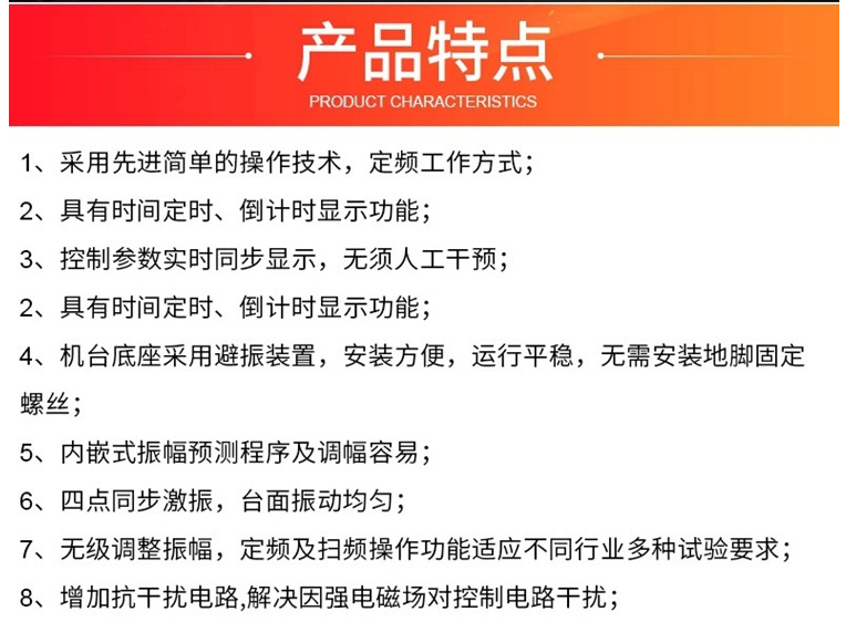 振動臺試驗機是提升您躍入高品質領域的利器,模擬產品在于制造.組裝運輸及執行階段中所遭遇的各種振動環境。用以驗定產品是否忍受 振動的能力,該類型設備用于發現早期故障,模擬實際工況考核和結構強度試驗,產品應用范圍廣泛、適用面寬、試驗效果顯著、可靠。正弦波、調頻、掃頻、可程式、倍頻、對數、時間控制。適用于電子.機電.光電.通信.電腦.汽機車.玩具.包裝等行業的研究.開發.品管制造,是您提高產品質量可靠性必備的試驗機
