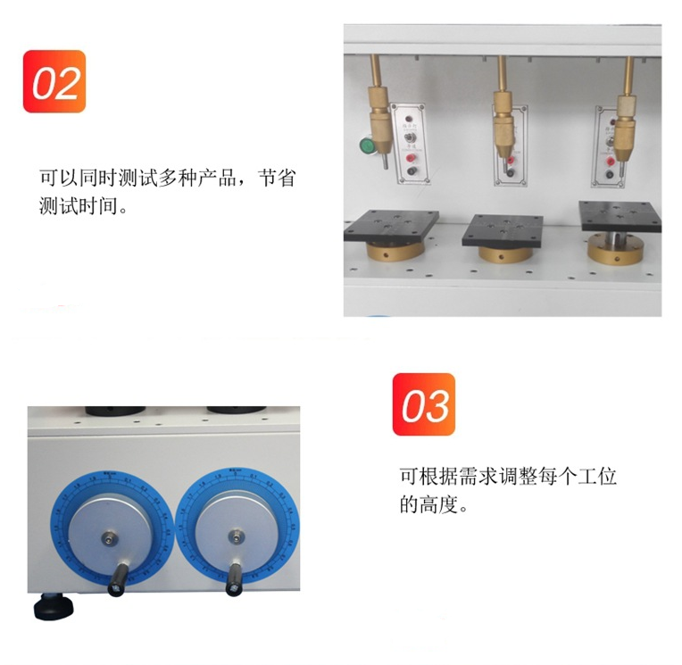 1、箱體采用靜電噴漆處理,工作臺面等采用鋁噴砂處理,美觀大方,整機設計合理結構緊固,運行穩定、安全、準確。2、根據各類按鍵產品測試制造,試驗夾具、行程可調,應用廣泛。