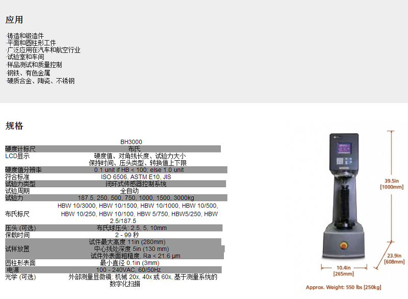 威威爾遜Wilson Hardness 布氏硬度計BH3000
