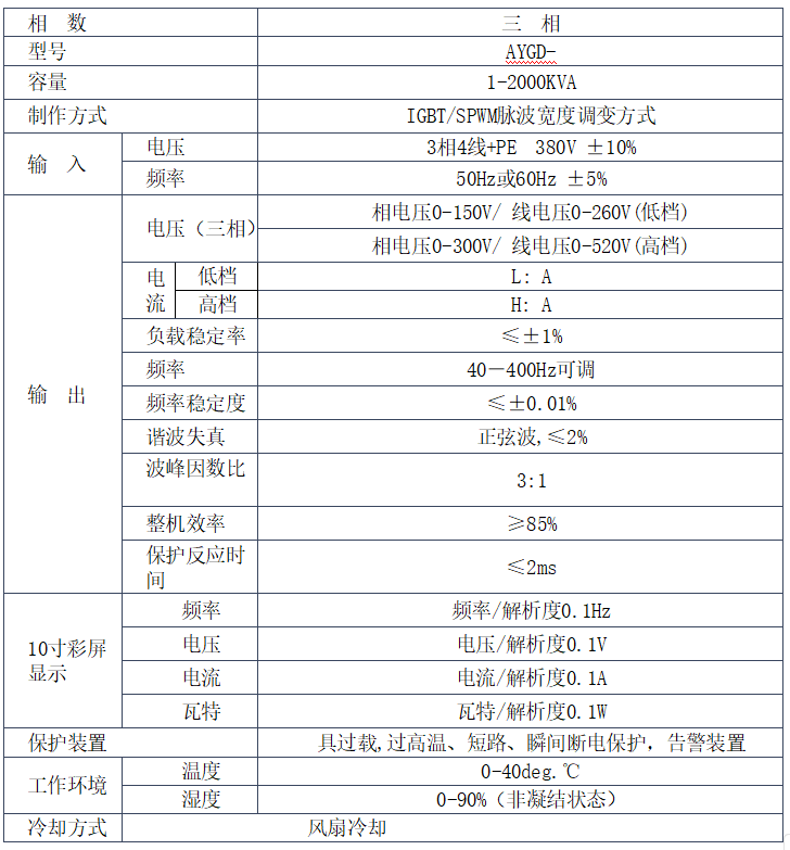 ● 輸出頻率:40~400Hz任意可調(diào);
