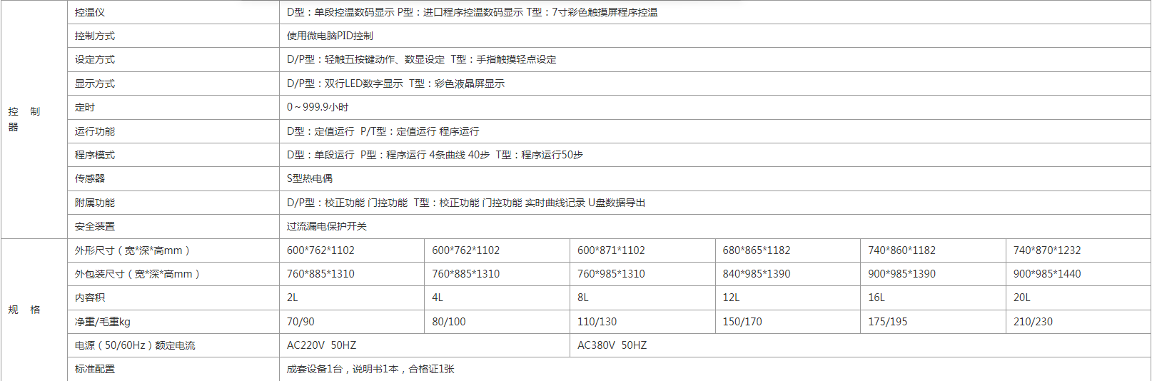 2.使用溫度范圍300~1600℃ 溫度分布±1℃內容積2L 4L 8L 12L 16L 20L